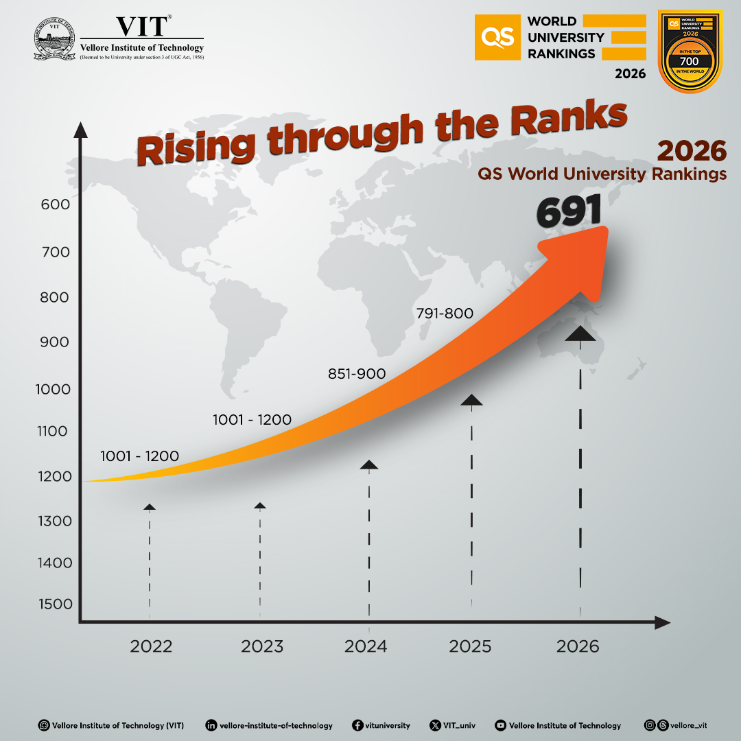 Vellore Institute of Technology (VIT), evolved from the former Vellore Engineering College during 1984 and conferred the status of a Deemed-to-be-University in the year 2001 by the Government of India under Sec. 3 of the UGC Act. During the four decades, VIT has emerged as an innovator in higher education, growing from 180 students to 67,000+ students. Today, VIT is amongst the most respected Universities in India, featuring top-ranked academic programmes. The principal campus of VIT is at Vellore, Tamil Nadu and off-campus at Chennai. VIT has its campuses at Amaravati, Andhra Pradesh; Bhopal, Madhya Pradesh. The latter two campuses are State Private Universities. Eco-friendly in design and equipped with cutting-edge infrastructure, VIT provides a favorable atmosphere for learning and living. Quality in teaching-learning, futuristic research, and innovation are VIT's raison d'etre. VIT adopts student-centric culture and places importance on quality and consistency in learning, teaching, and research experiences.